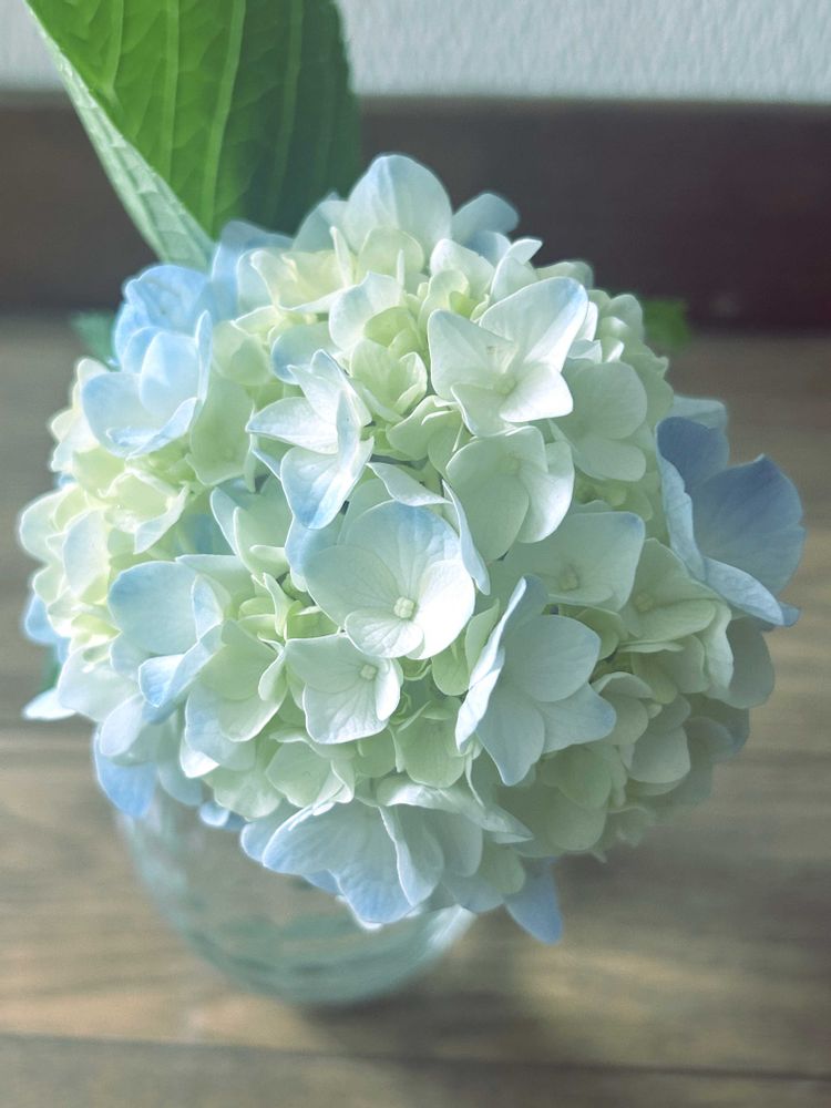透明感のあるステキなアジサイなお花ですネー✨🤍🩵🤍🌿