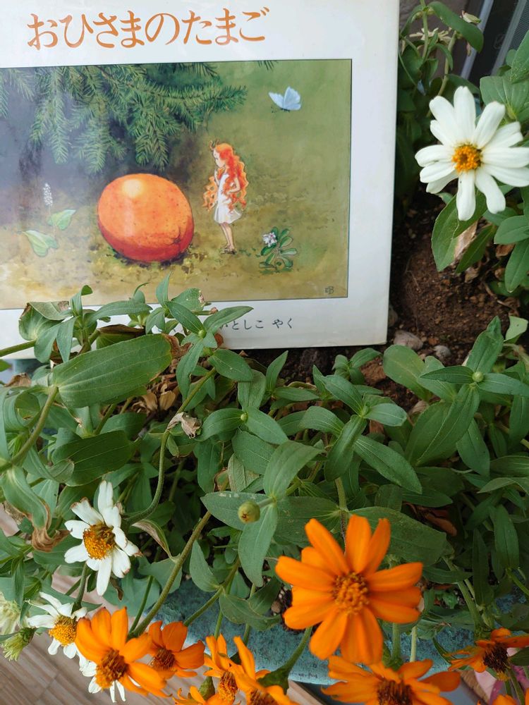 おはようございます☀(๑˃̵ᴗ˂̵)綺麗な色の表紙の絵本ですね😃🩷あこさんが前に投稿してたルピナスさんの絵本がとても気になって買ってみたんですが😆見てみたら内容も暖かくて良くて大人でも楽しめて☝️うちの母親も色が凄く綺麗だって見てました🤭こちらの絵本も綺麗だし気になるから調べてみようと思います🥰🤭ジニアもGSで知ってあんまりかわいいから私も育ててみたいと思ってる花の一つです🩷