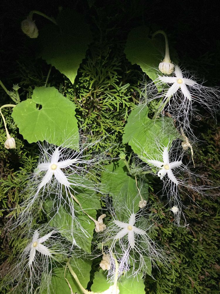 賑やかな夕飯の後、カラスウリを見に庭に出たら🤍🌿