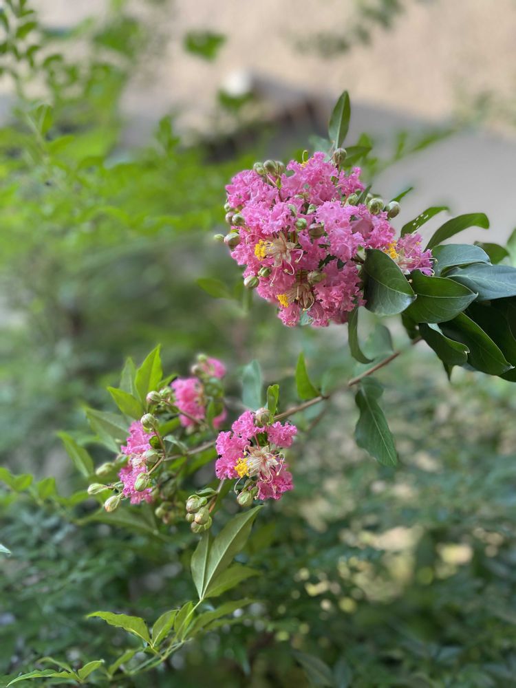 ウチのサルスベリは昨年8月半ばに咲いてました😁静様と同じ種類のはこの辺りでも咲いていますね🌳🌸うちのは、ブラックパールレッドという赤い花が咲いて葉っぱが黒っぽい物なので遅いのかなあ