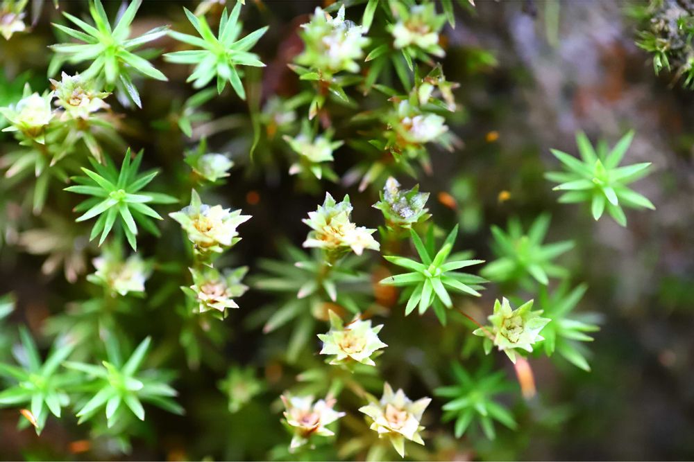 この山肌一帯がスギゴケが占めているものの他の苔もたくさん混生