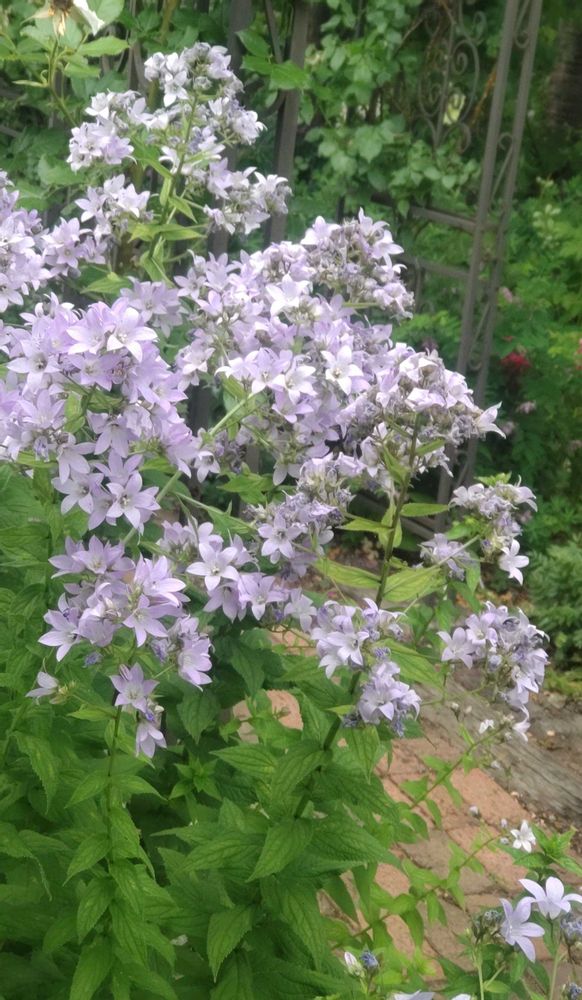 カンパニュラ ラクチフローラは 星型の薄紫色の花をぎっしりまとまって咲かせます。