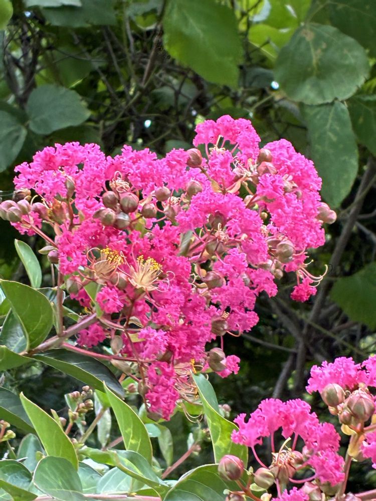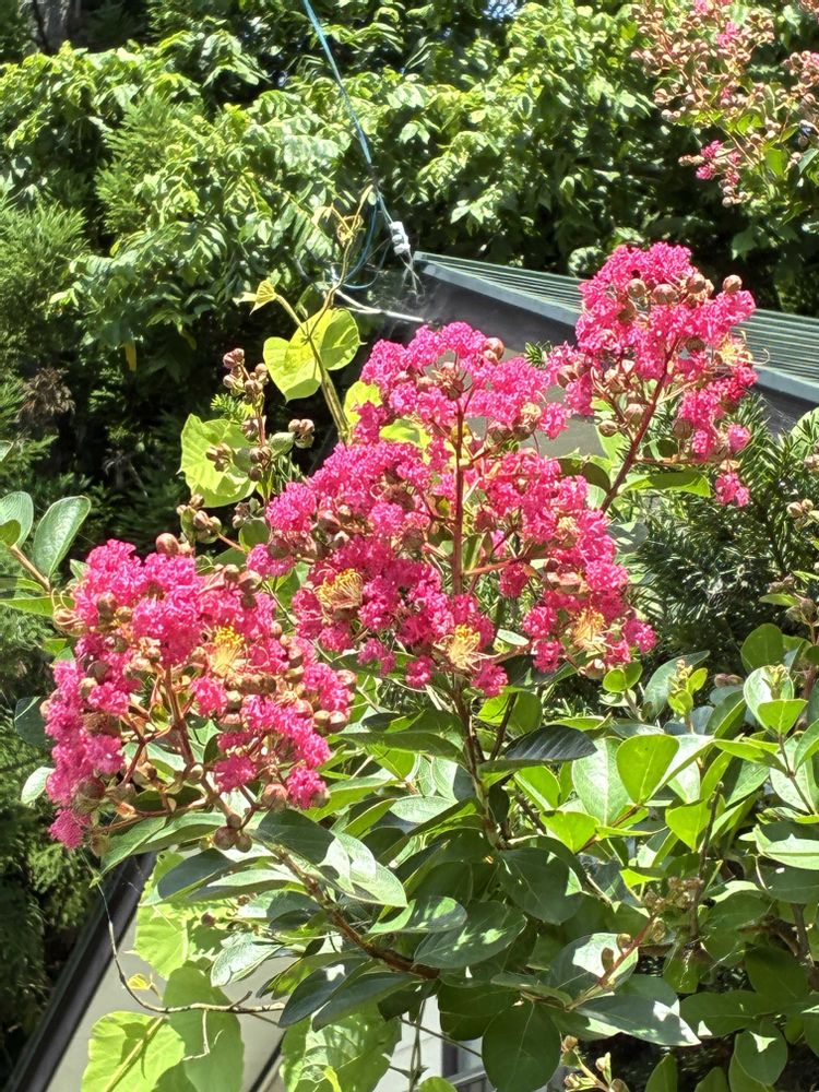 サルスベリが咲き始め、アジサイは見納め、クリが出来始めました。🤗🤗🤗