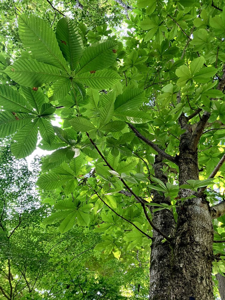 おはようございます!トチノキ。木肌が白く、大きな葉。見上げると緑の天井のよう。涼しげで美しかったです。素敵な一日になりますように🤲