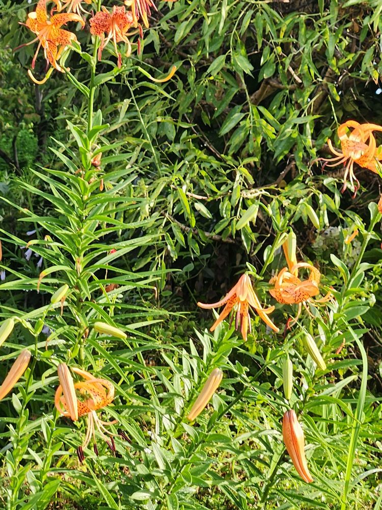 散歩道、オレンジ色のオニユリ元気に咲いています。💛💛💛