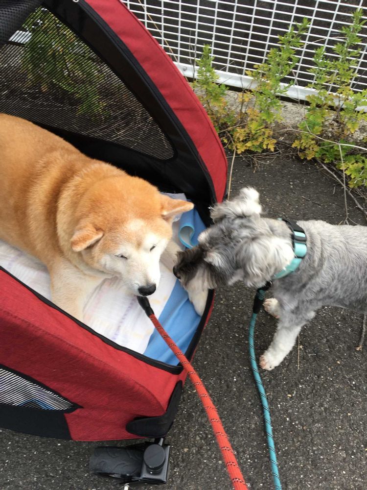 お散歩ジロちゃん シュナとも仲良しやったんだ。❤️❤️