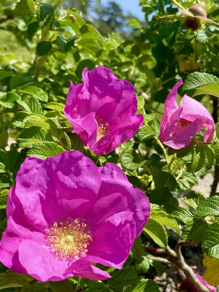 猛暑の中でも元気いっぱいに咲くハマナスのお花😊