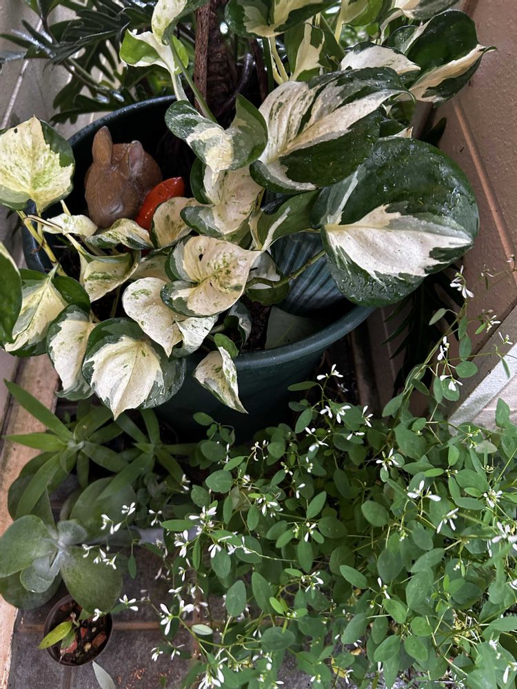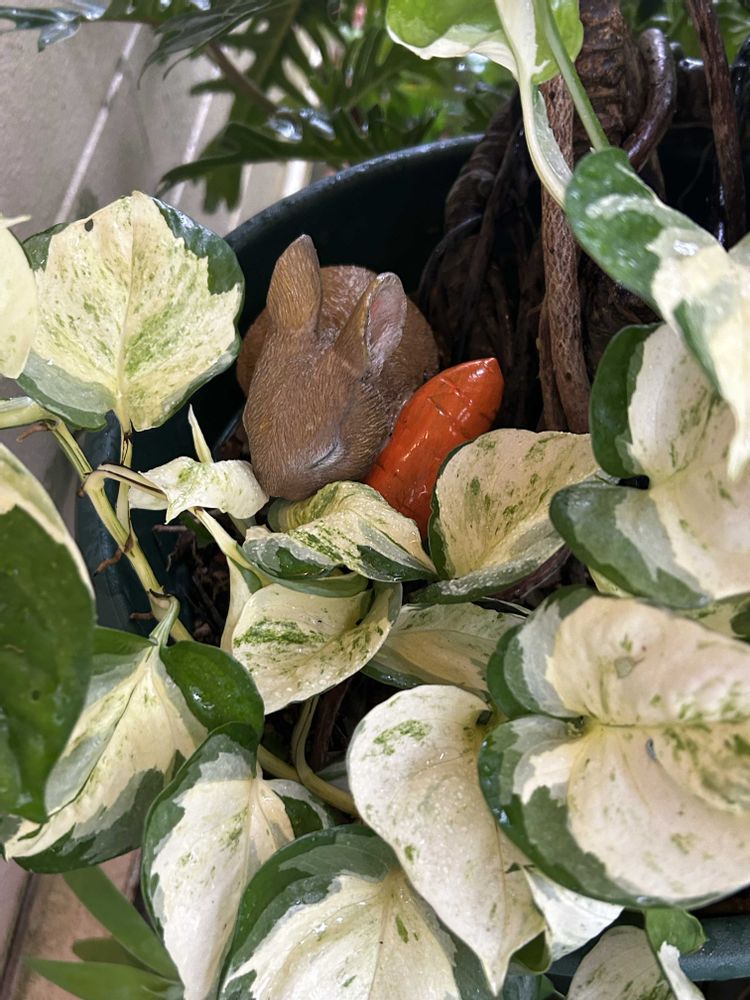 台風7号に備えて避難中のお気に入りのウサギの置物がスヤスヤ眠ってるように見えるのがせめてもの救い🐰ܮ🥕💛