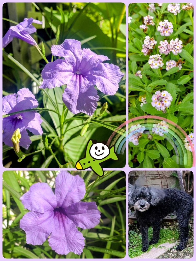 今日は虹の日🌈庭を物色するエルのワイルドな写真を発見🐶隅っこの辺りがお気に入りだったよう🐾今はそこにルエリアがそよそよと咲いているよ〜💜🌿空から眺めておくれ☺️