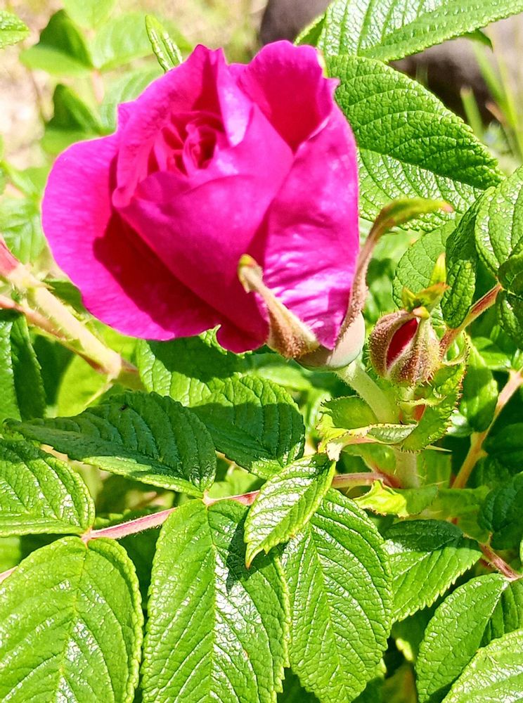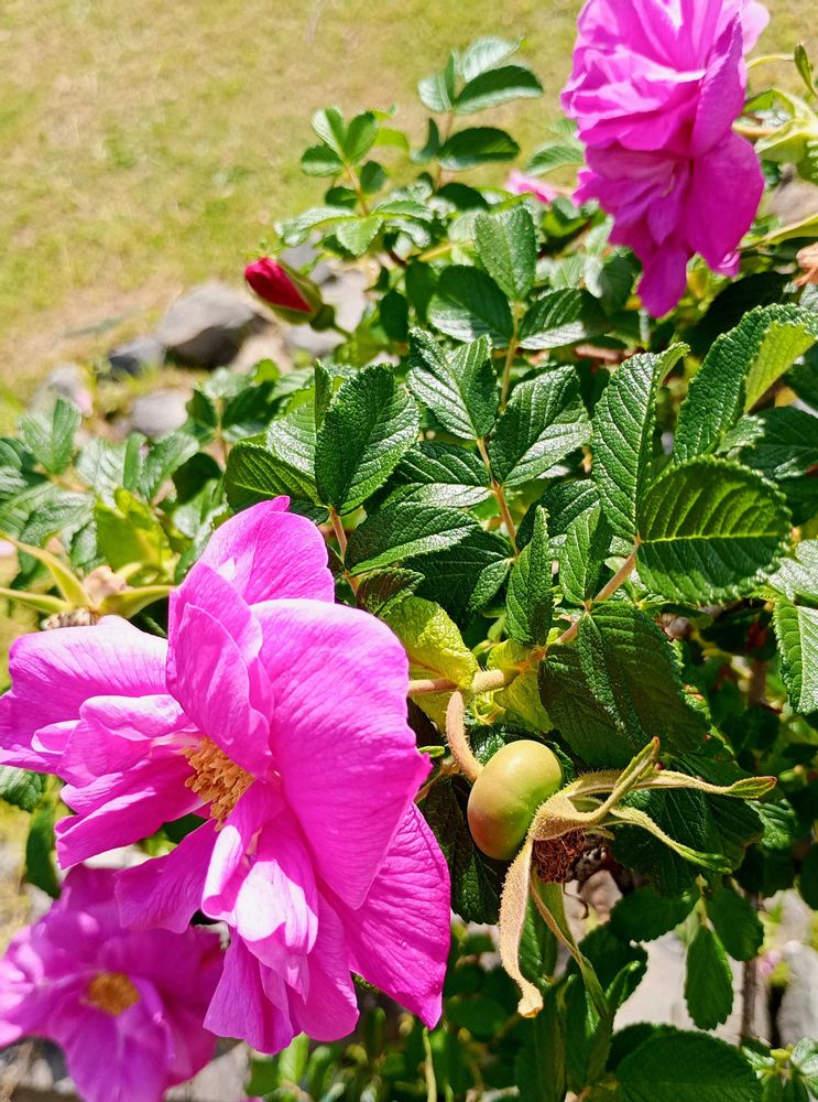 濃い💗ローズピンクのハマナスの花 野生種の強さも併せ、魅力的な花🥰✌🏼💓