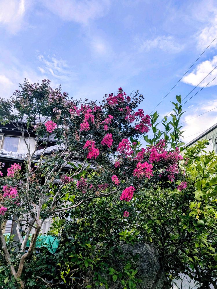 1️⃣晴れた空に百日紅の濃いピンクが映えます