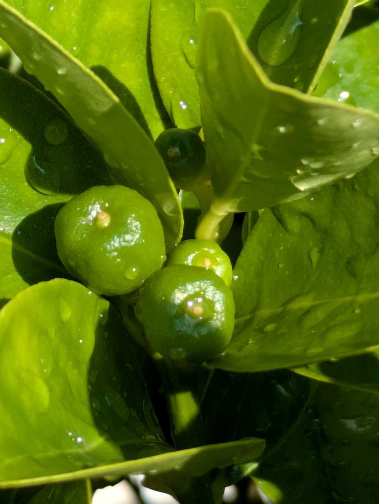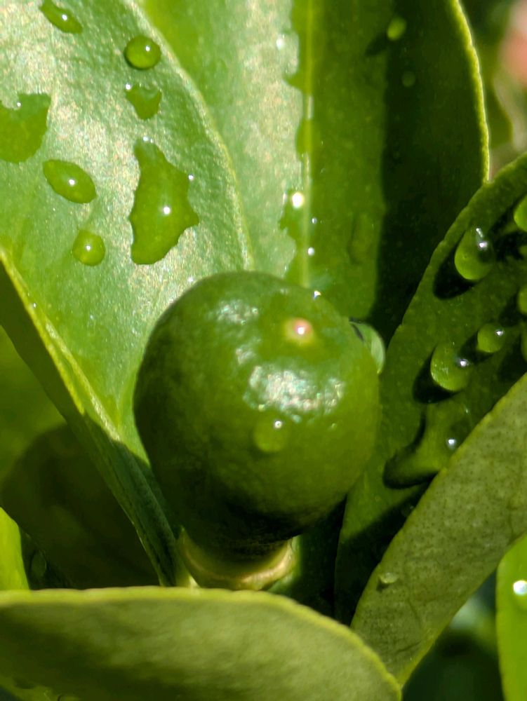 ちっちゃい白いお花が咲いていた金柑に可愛いベビー🍊が見えてきました。