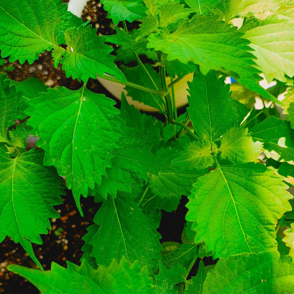青じそは25センチくらいの草丈、何回か収穫しながら、育ててます。