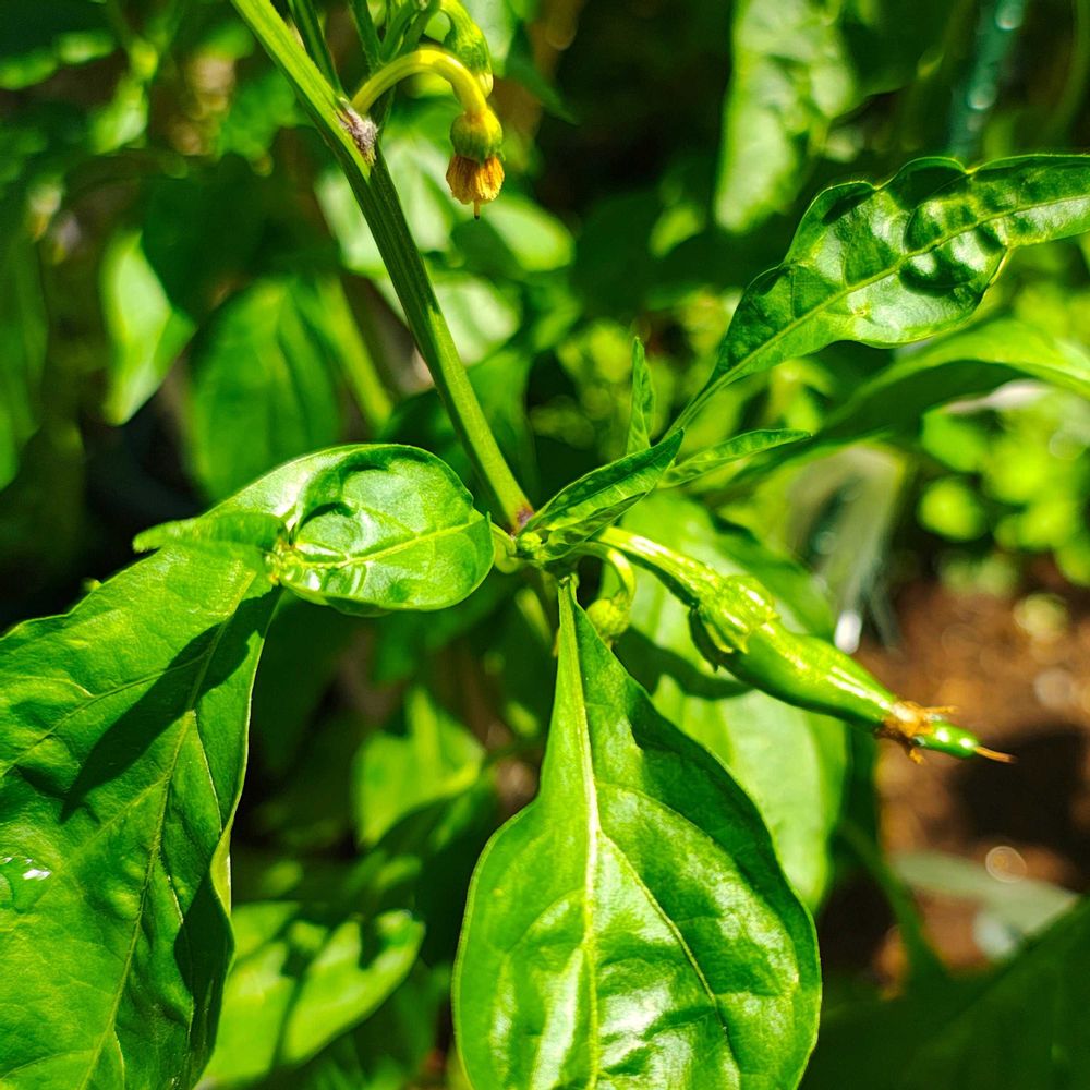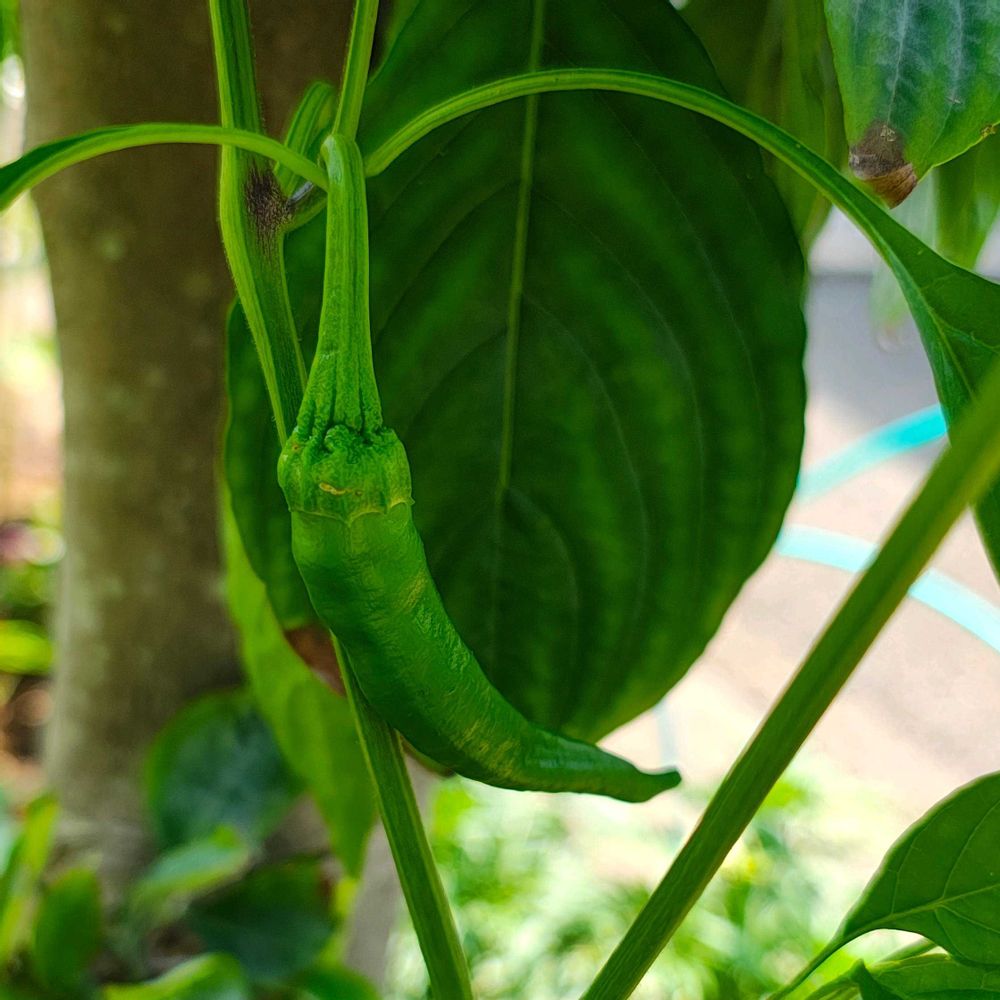 昨年いただきました、万願寺とうがらしの種もまいてみて、ようやく実をつけました。