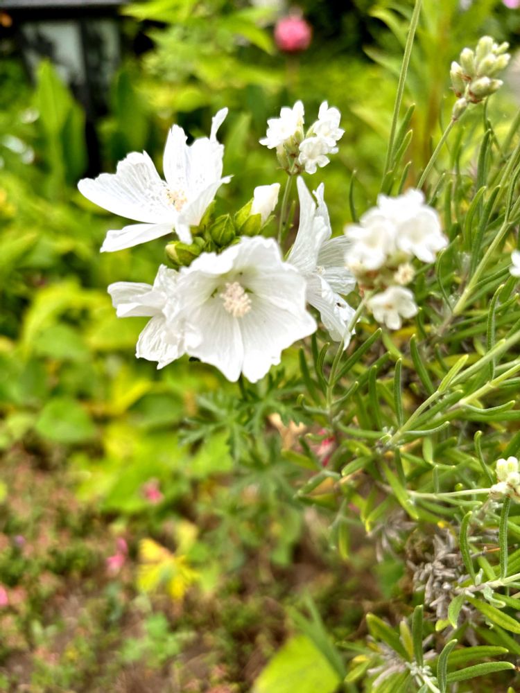2枚目のえるのママさんから貰ったムスクマロウの白も咲いたよ😄