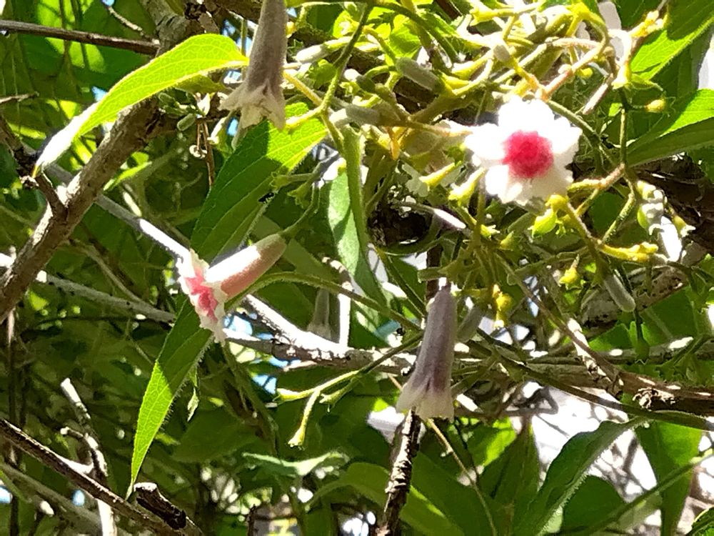 さて、職場の垣根の所に白い花びらと赤い中心部の花があり気になってて