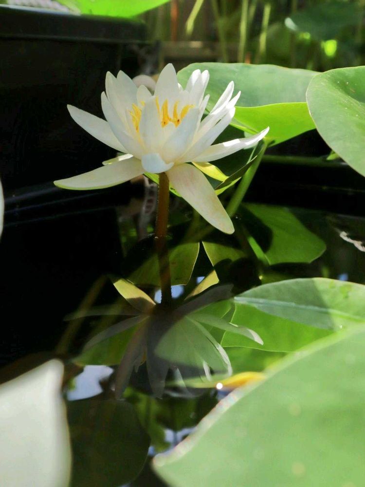 白花の温帯スイレン「アルバ」が咲きました♪シンプルで良いですよね♪