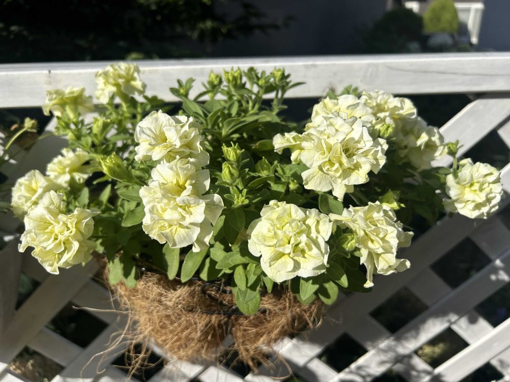 今年は4色お迎えした八重咲きペチュニアのパープルとライムが今は調子よく咲いてます🌸