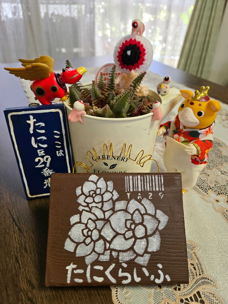 GS5年目になりました🤗 沢山の花ともさんが出来て私の知らないお花やサボテン🌵等々を見せて頂いて日々楽しんで癒されてます(*^^*) こういうサイトも初めてで、失礼な言い方をしていたらごめんなさいm(__)m 今は義父・義母も亡くなり去年実母も亡くなり(実父は16の時亡くなりました)子ども達も独立し(近くに居ますが独身)夫婦2人でのんびり自分達の趣味を楽しんでます🤗 GS初めて多肉、サボ🌵ちゃん、ソクモンちゃん、ソニエンくん、ペコちゃん、お散歩ちゃん、コポタン、トトロ、SNOOPY、ムーミン🐱🐶🦉🐸はにわ🗿等々を自分でネットで買いたくてメルカリやAmazonのやり方も覚えました〰️🤣 (何時も主人や息子に頼んでたけど、また買ったの~🤪って言われるの嫌なので🤭ホホホ) (因みに何時も主人に言っている言葉です🤭) ガチャも増えたな~🤔🤭 でもお出掛け先の楽しみも増えましたよ🤭 主人や息子もチキンとか見付けると買ってきてくれます🤗 断捨離の歳なのにね〰️🤣 いえいえ、今を楽しみましょう~🎵(O゚皿゚O)(^o^)v 無言フォロー😆👌❤️ですが一言頂けたら嬉しいです🥰 フォロワー増やしたいだけの方にはリフォローしません<(_ _*)> まだまだ🔰です。此れからも宜しくお願いいたしますm(_ _)m 2021年6月27日スタート