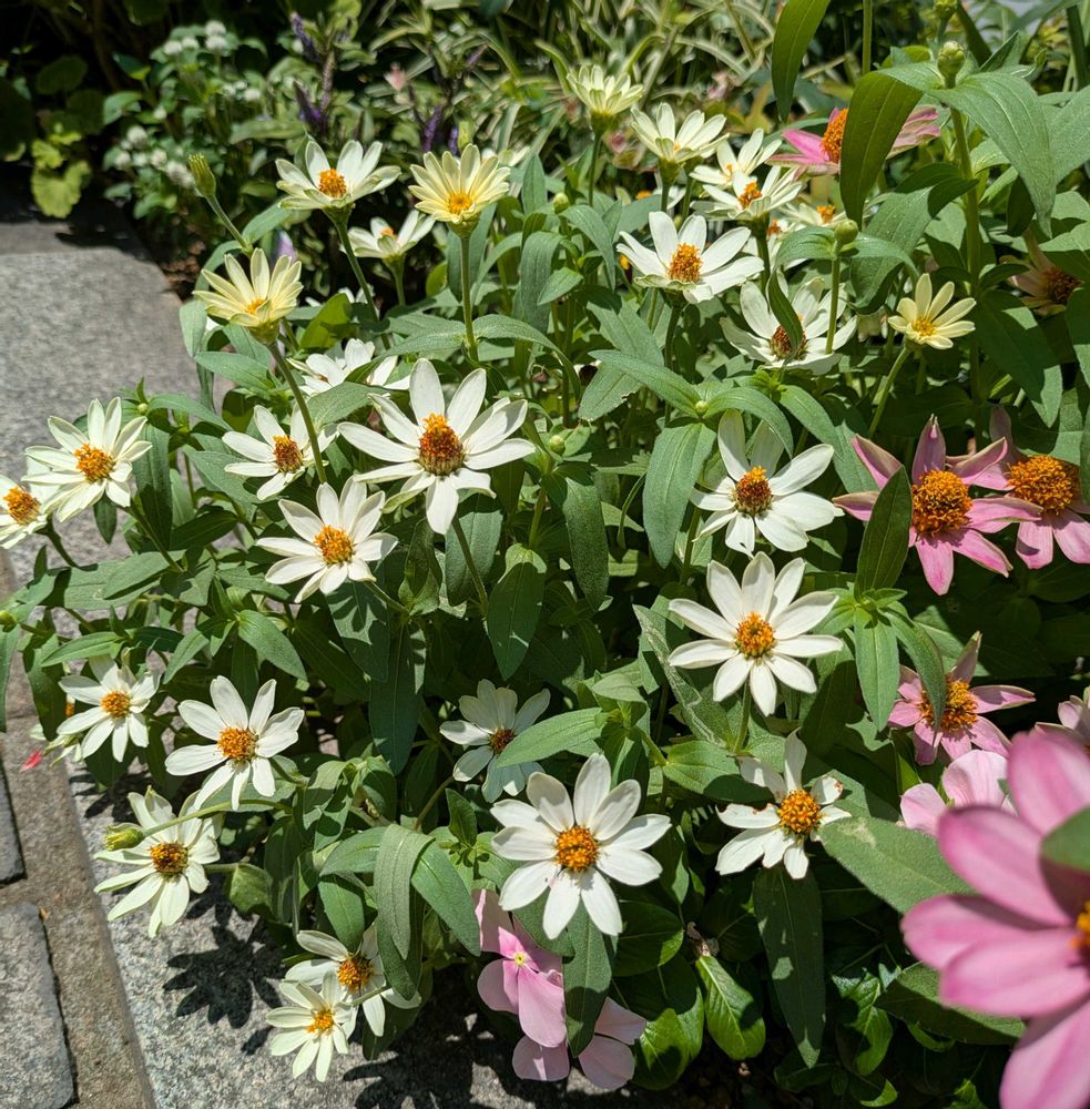 ちっちゃいセンニチコウの白と濃いピンク ちっちゃい子達は元気ですね~🤲´-