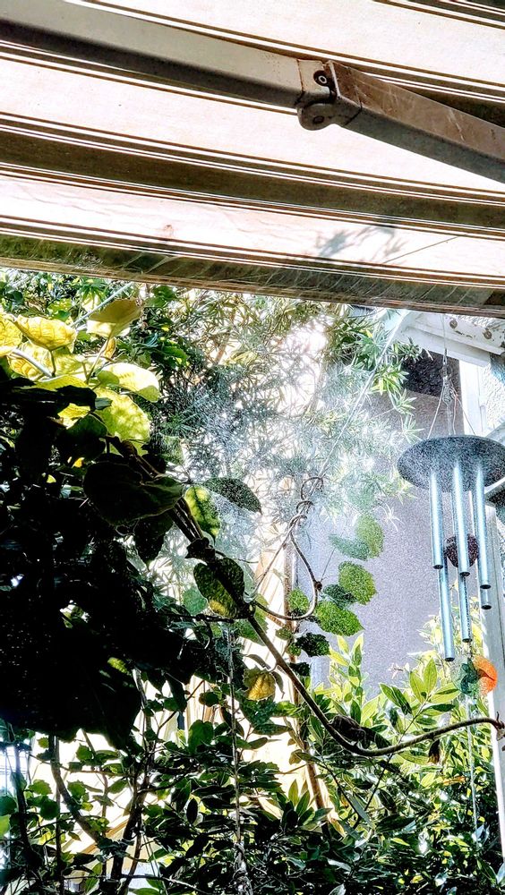 ミストとガーデン扇風機のおかげで、こんなに高い気温に気がつきませんでした😅 気温が高いと、ミストが良く見えます😌