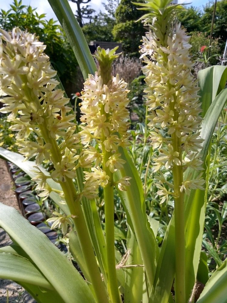 この暑さでパイナップルリリーも辛いんでしょうねー