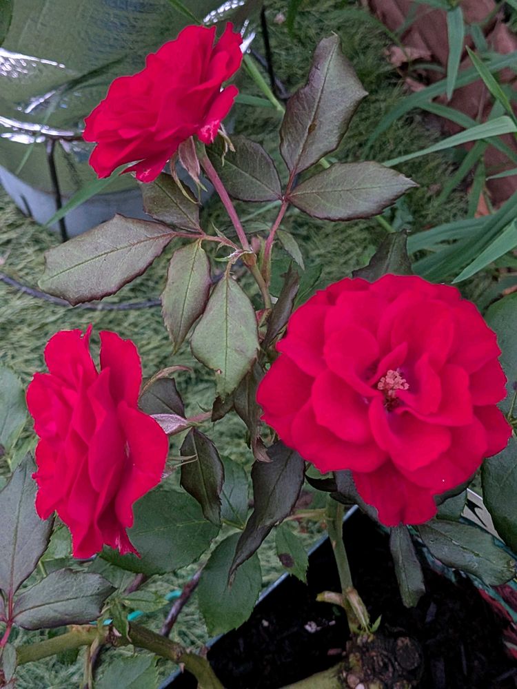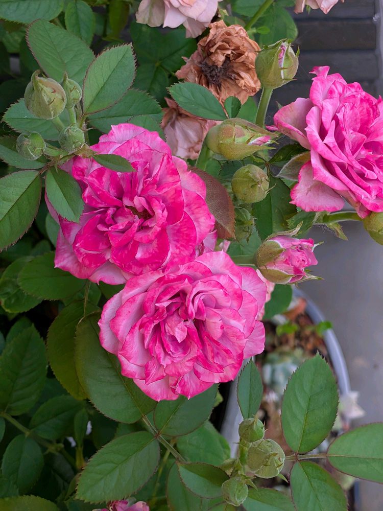 今咲いてるバラです。鉢植えに巻いた銀のアルミシート、実に良い仕事してくれてます👍😁夕方まで水がもつ✨鉢底から流れる水はお湯じゃない😯常温の水‼️🥳
