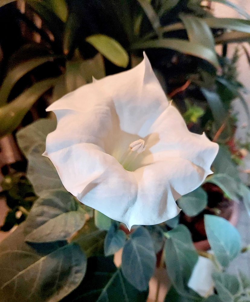 エンゼルトランペットが真っ白な妖精のように咲いて和ませてくれてます😊