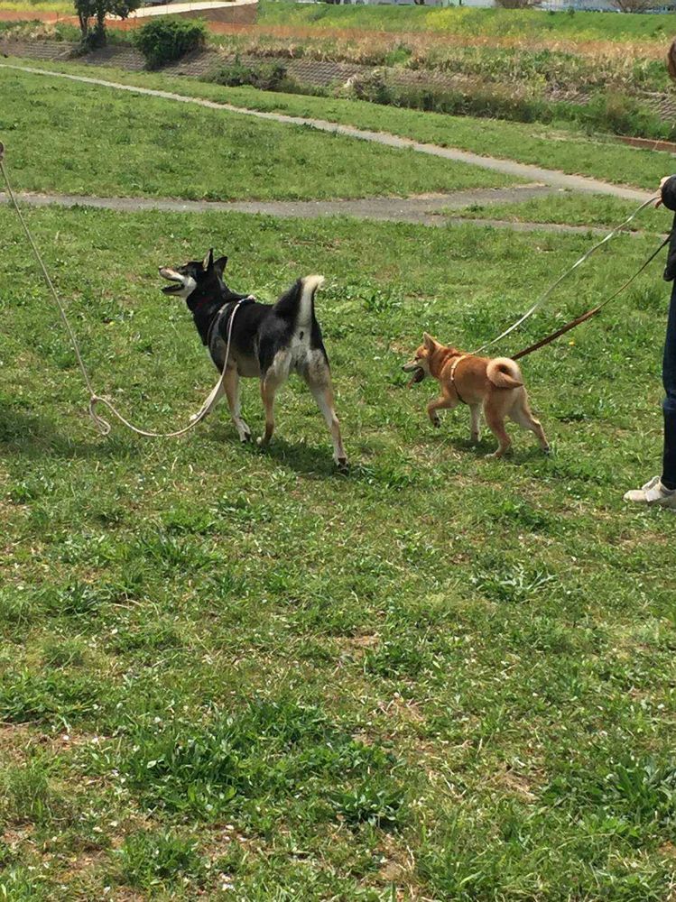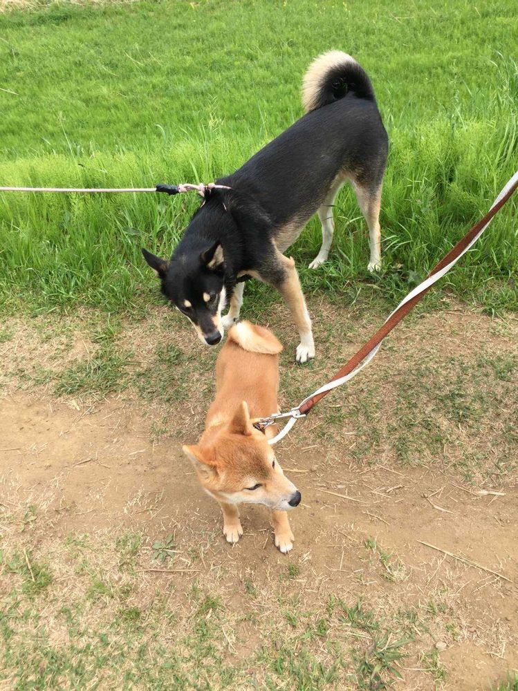 まだるるちゃんが受け入れて無い時期です😓お散歩の時に匂いを嗅いで少しづつ距離を縮めたね🐶🐶