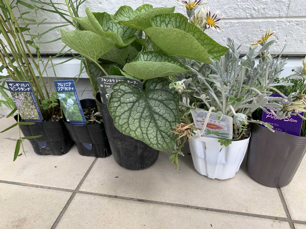 かわいいワレモコウ、めっちゃ探していたイトバチョウジソウ、前回訪れた時欲しかったけど断念した白い花のブルンネラ、ガザニアハマっていた頃に欲しかったティラミス、少し珍しいらしいブラキカム、です!