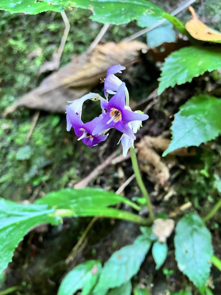 紫が印象的な綺麗なお花ですよね。ところがこれ、俯いて咲いていて花弁の裏側が白いので、遠目で見ると全く目立たないのですよ💦