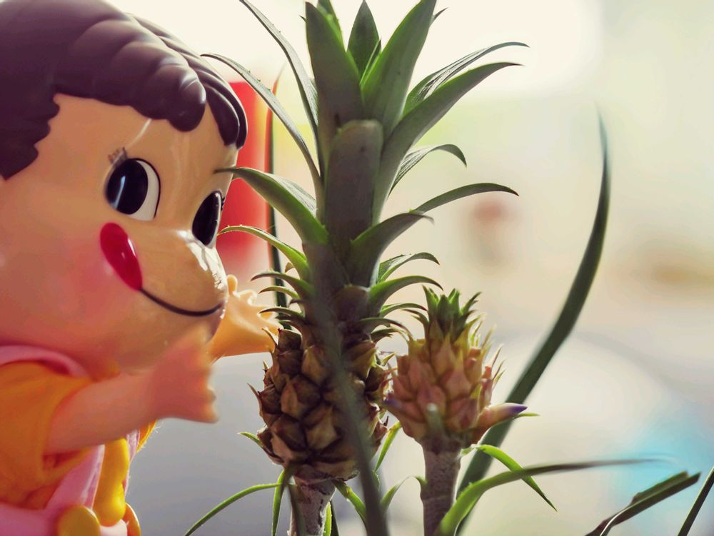 🍍食べる前に葉っぱが刺さって痛がってます🤭