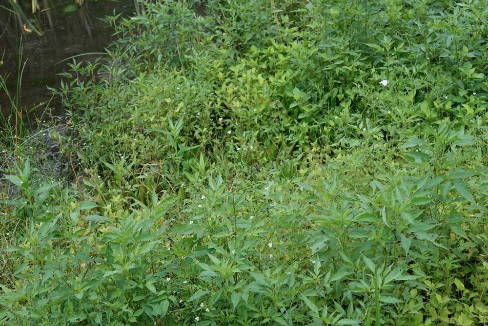 近寄れない水辺の叢に小さな白い点が見えトキワツユクサかと思いました。