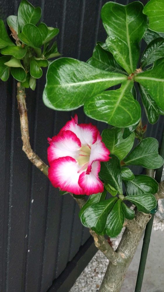 今日のお花 アデニウムは 南アフリカ 南西アフリカ アラビア半島などの熱帯地方原産の多肉植物で "砂漠の薔薇" の別名でも呼ばれるのだとか…。