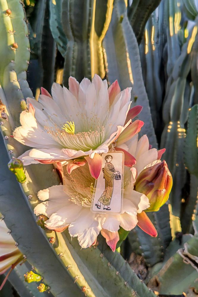 珍しいサボテン🌵の花、お散歩ちゃんとコラボできてラッキーでした。