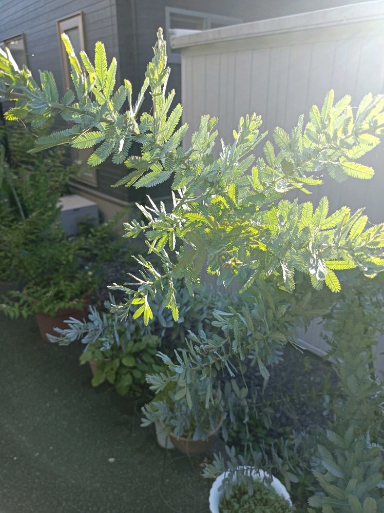 ③銀葉アカシアも朝日に照らされてシルバーリーフが綺麗
