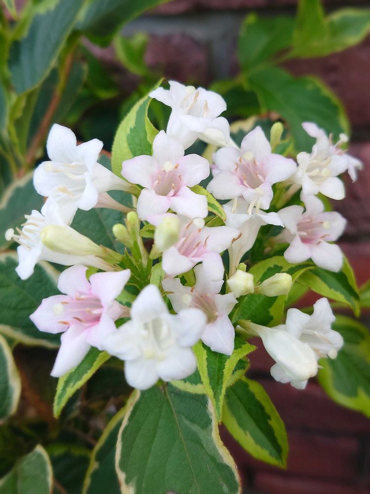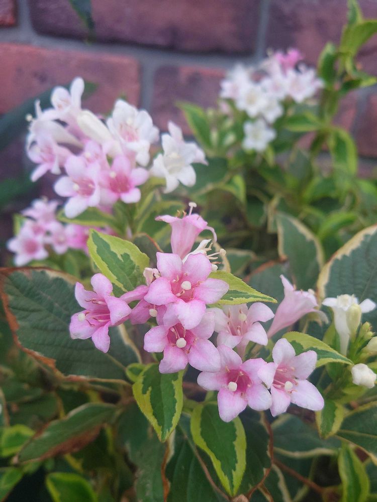 斑入りオオベニウツギさんがまたまた咲いてくれました👏✨️白🤍からピンク🩷へ変化していく花弁が綺麗で可愛いです😊🎶
