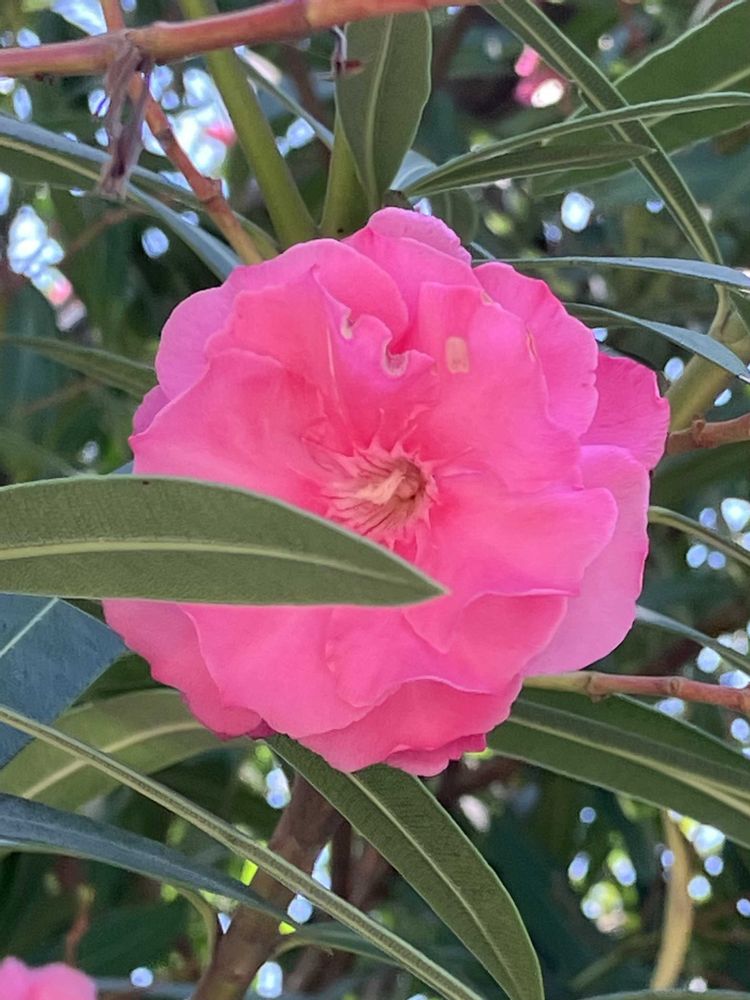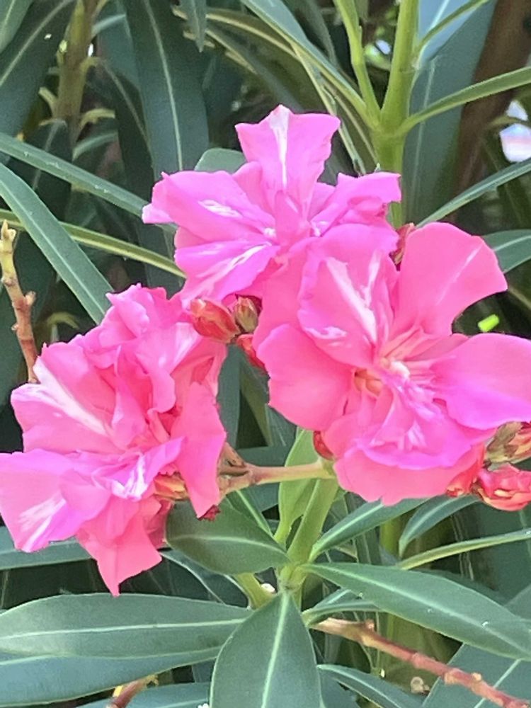 キョウチクトウ、ピンクに白いライン🩷🤍🌿は、見て嬉しくなりましたよ〜