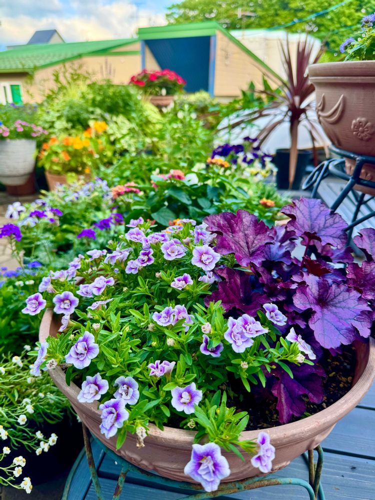 ④ようやくプランターの縁まで広がったカリブラコア(グレープフリル🍇)と、今年お迎えした