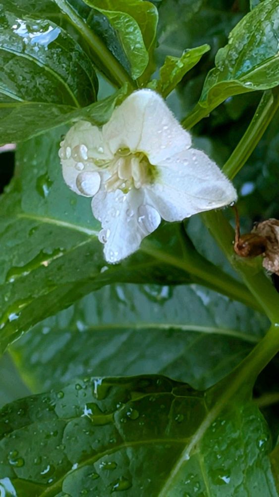 ①先日買ったホオヅキに白い小さな花が咲きました。