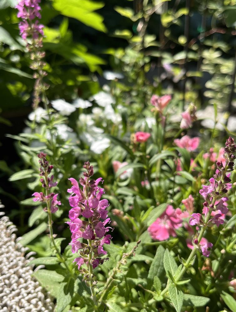 朝から暑い日差しの中サルビアスペルバメルローの可愛いピンクの花が咲きました ミニトマトのアイコ赤くなったけれど今年は日差しが強すぎて皮が固い スライドして下さいね
