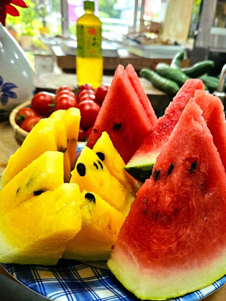 黄色🟡のスイカ懐かしい🍉、昔田舎で作ってましたよ、美味しい🤤です