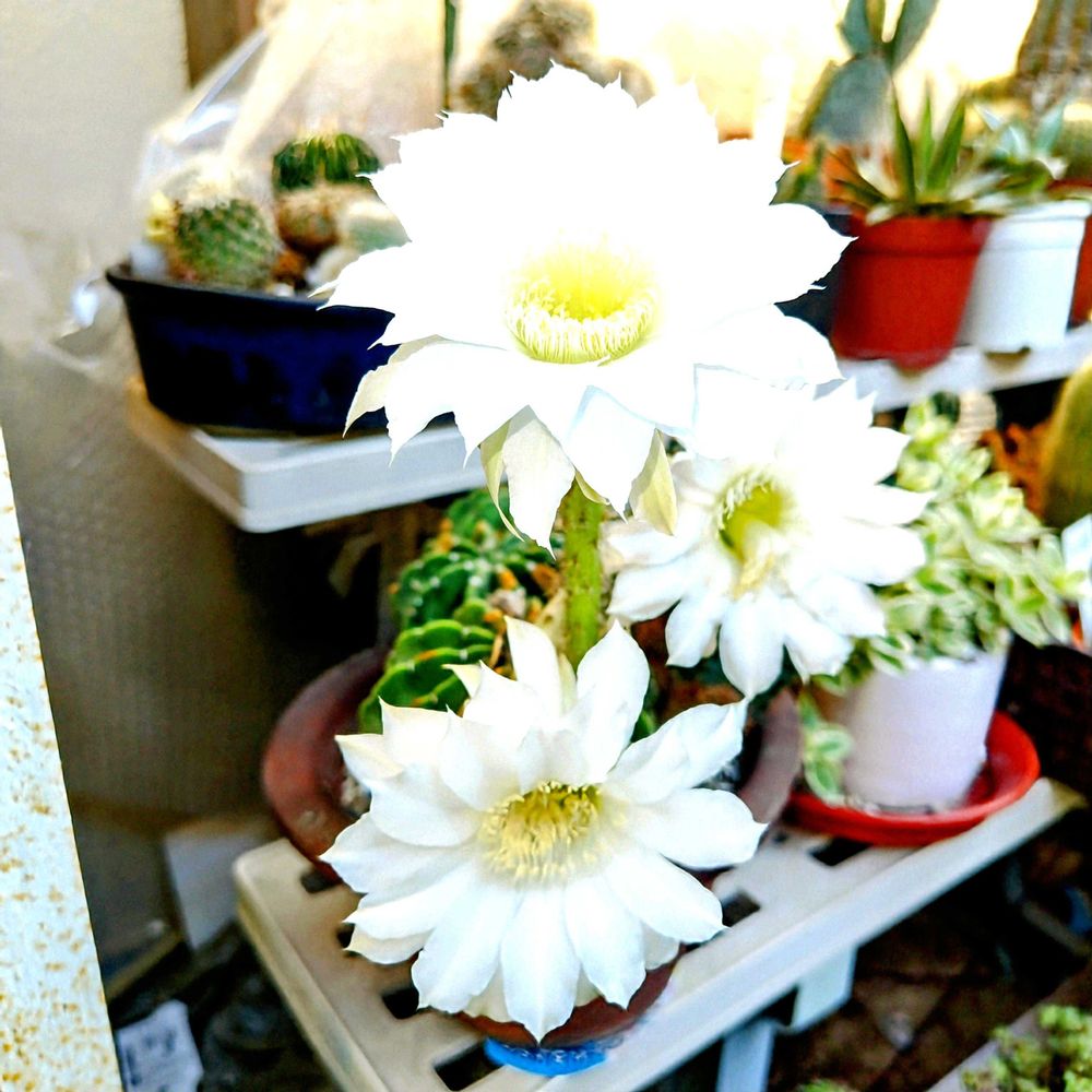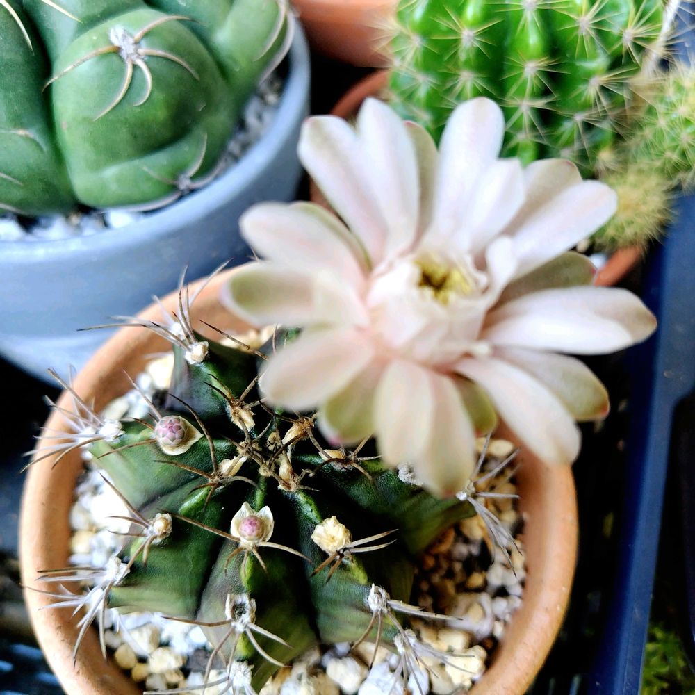 刺無短毛丸の花が3つ一緒に咲きました🤍✨