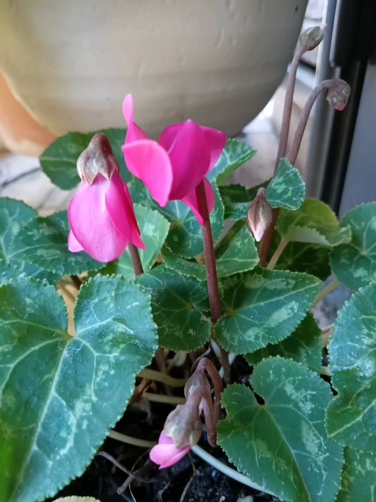 室内の知人に頂いたシクラメン🪴は、🩷何とか、夏越ししてくれそうだけど、、どうかなあ?2年目も頑張ってくれるかしら〜。😅💕💕💕💕