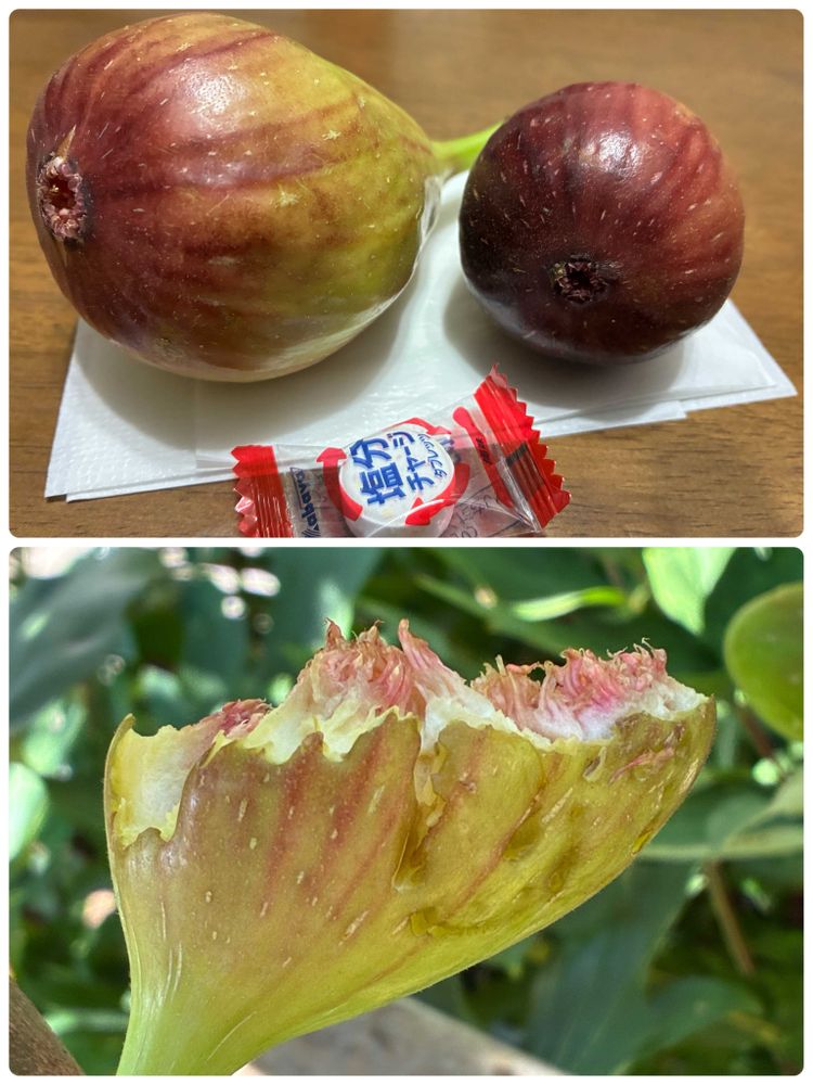 先日初物のイチヂクが何物かに齧られていました😮💨
