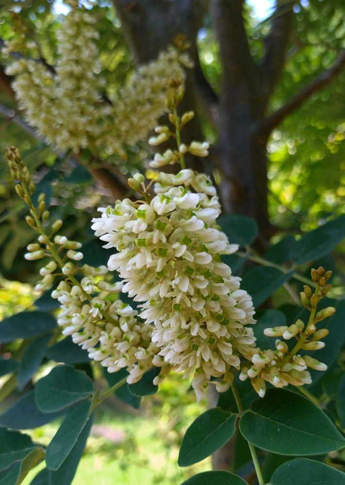 マメ科イヌエンジュ属の落葉高木。中部地方以北に自生する。庭木や公園樹にもされる。葉は小葉が7〜11枚つく奇数羽状複葉で、小葉の裏面には軟毛が密生するが、表面はほとんど無毛。花期は7~8月。枝先に数本の花穂が立ち上がり、小さな蝶形花がびっしりとつく。基部から順に咲いていく。材が美しいので床柱などに使われる。樹皮は染料や薬用。