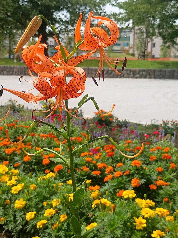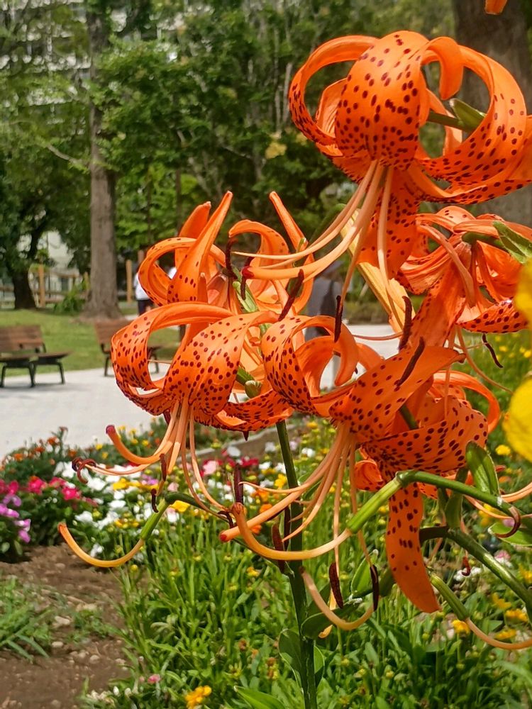 公園の花壇でオニユリが咲いていました😊