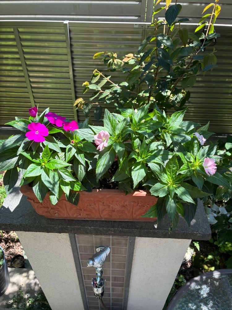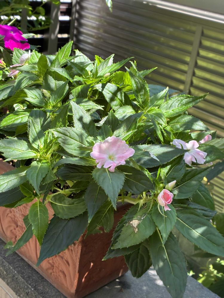 置き場所はパープルとピンクは南側のあまり長く日に当たらないところに。ホワイトは木の下の半日陰においています。
