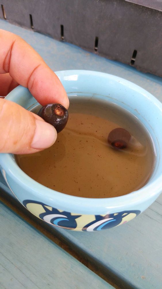 そしてメネデール希釈液を入れたカップに入れて次の日見たら液体が茶色になって種も少し水分を含んで膨張してる感じでした😆