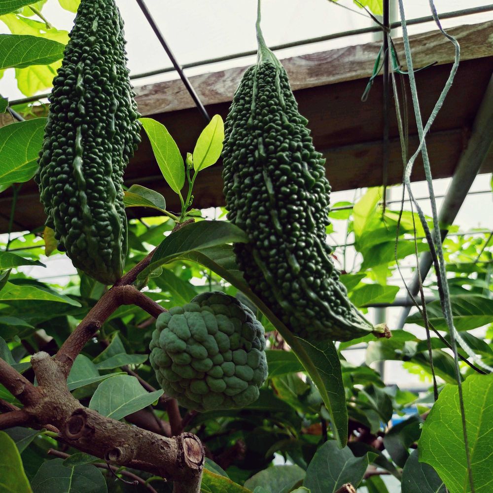 ゴーヤーとバンレイシ大きく育っていますね〜